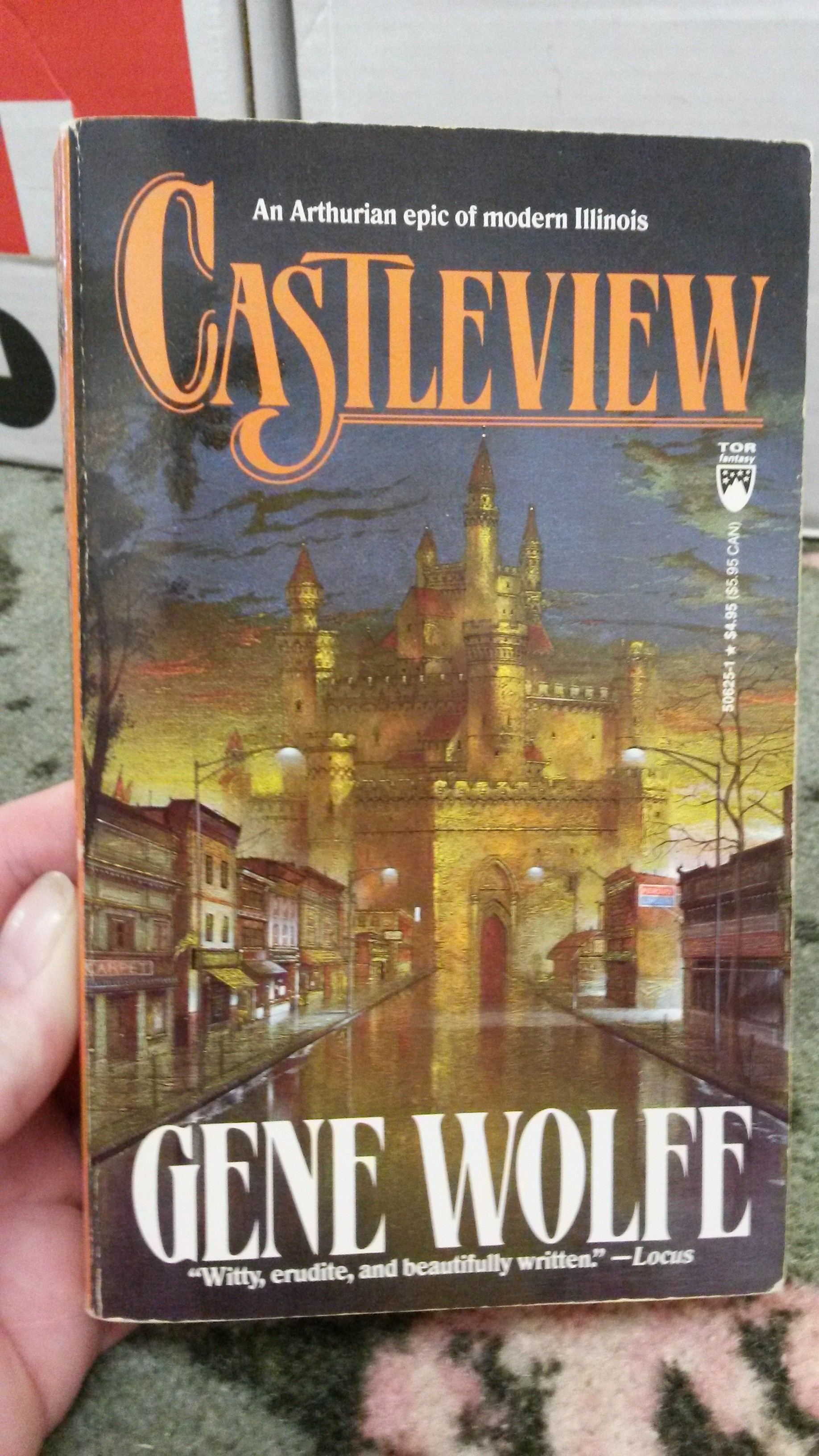 In case you missed the blurb above the title, Castleview is “[a]n Arthurian epic of modern Illinois.” It was published in 1990 by Gene Wolfe. Sounds fun!